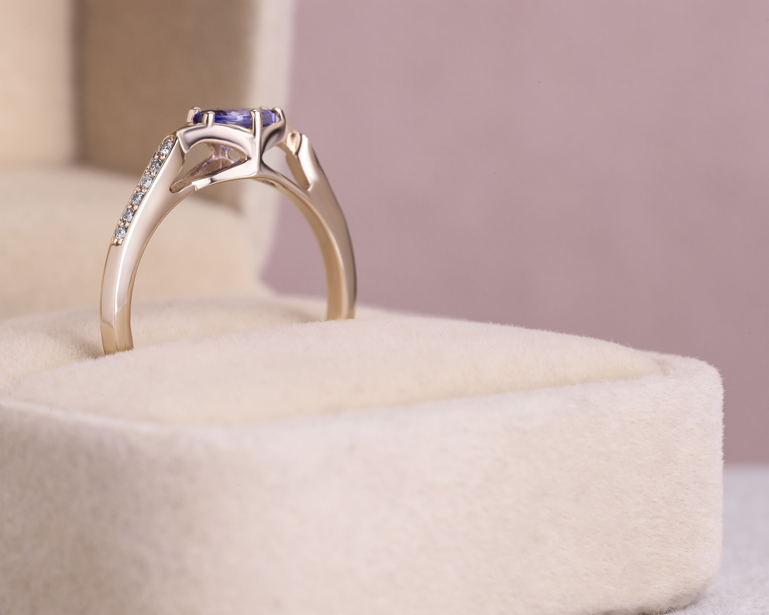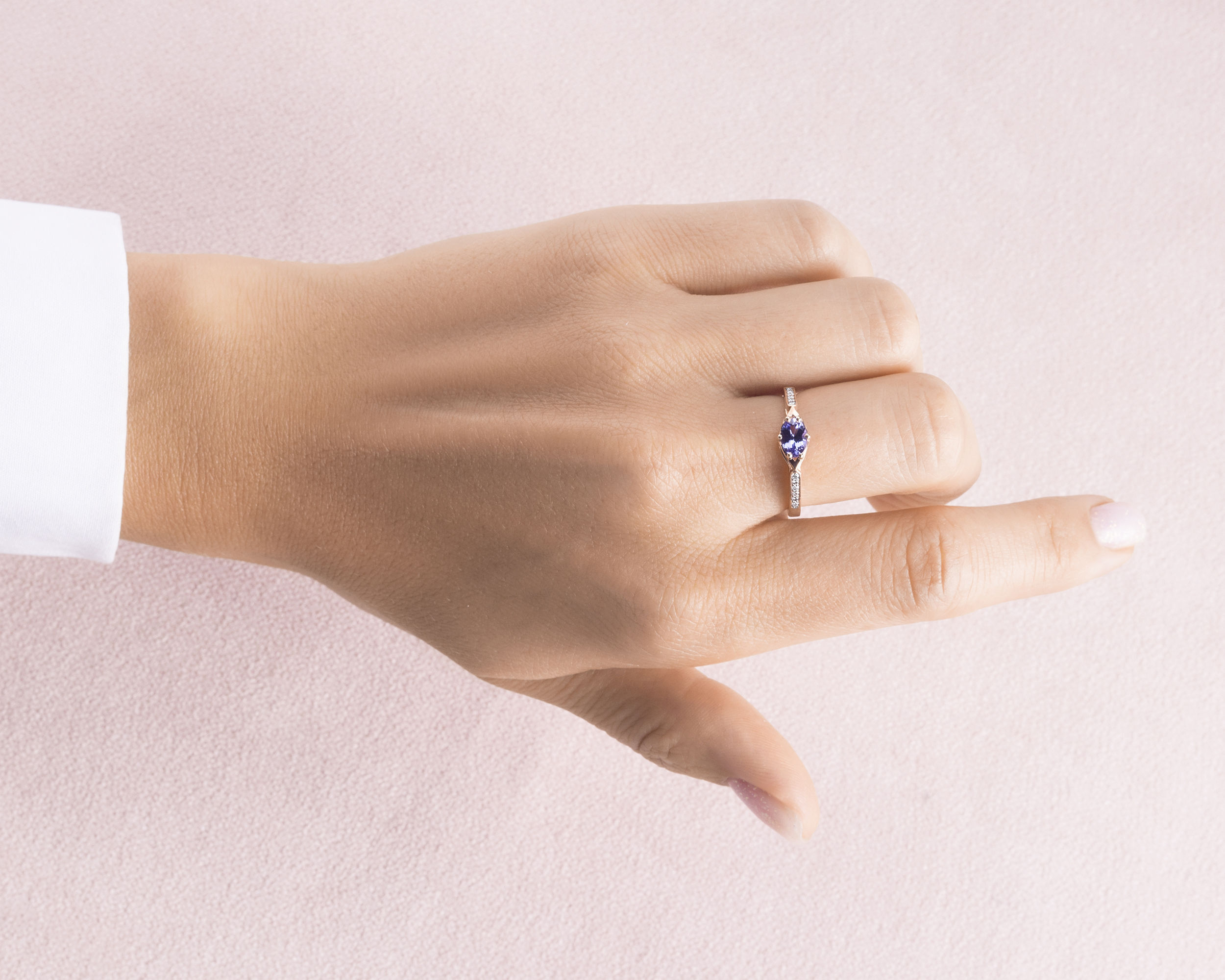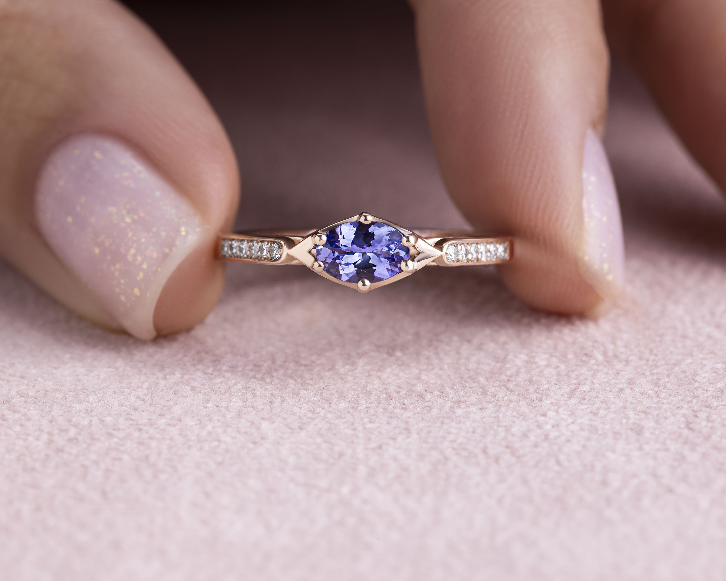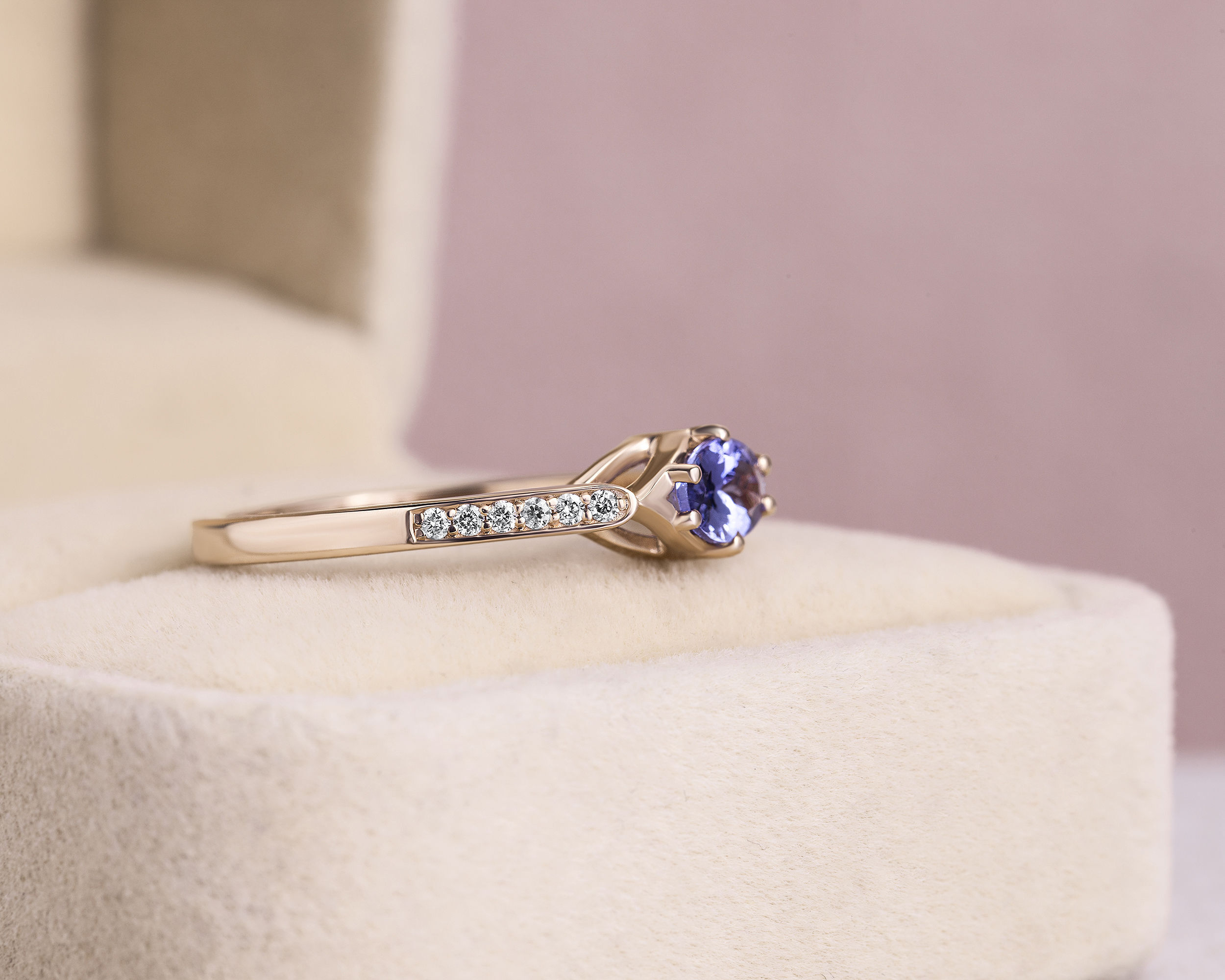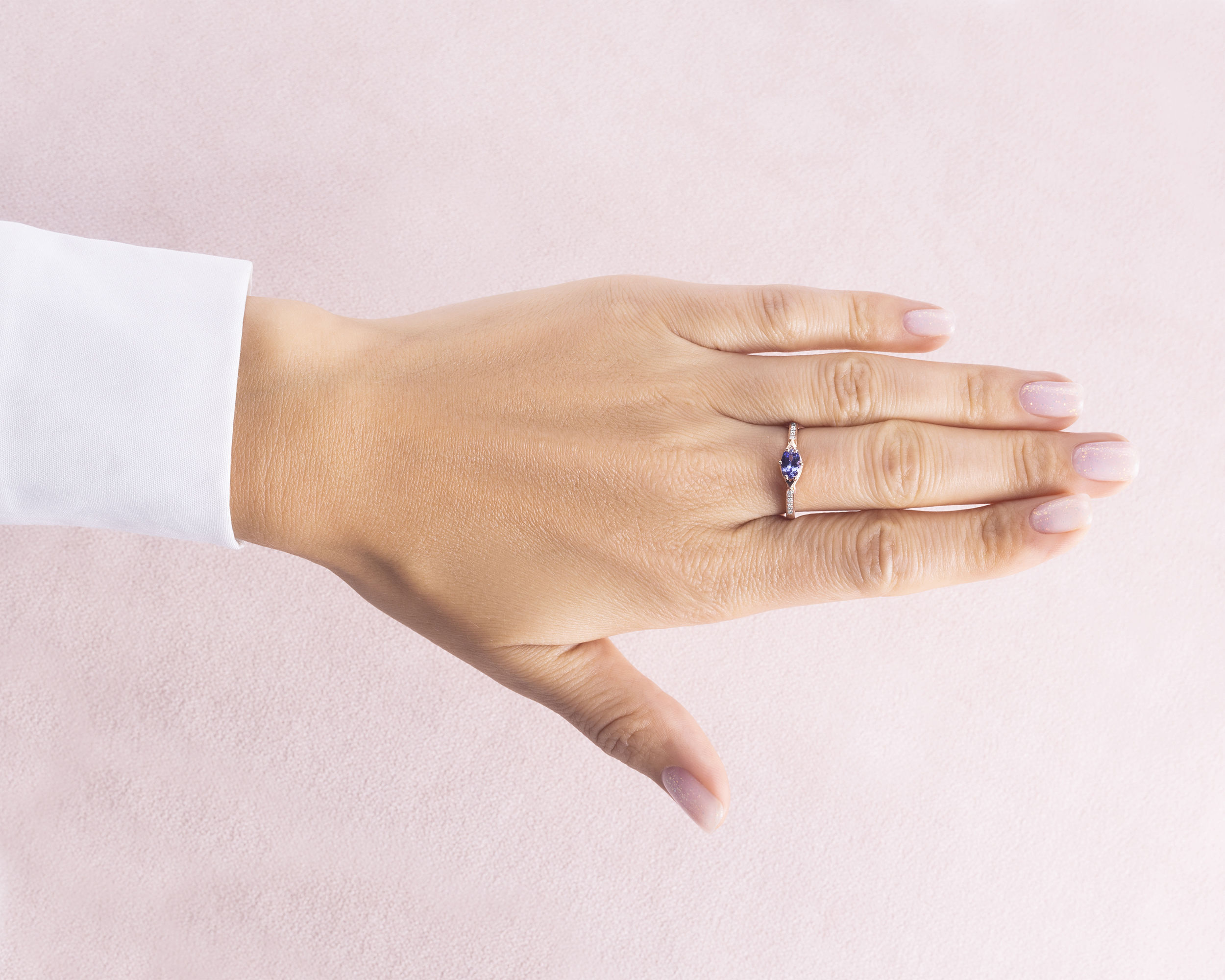 0.6 Ct Violetish Blue Tanzanite & Natural Diamond Ring, F-G/VS-SI, 14k Rose Gold